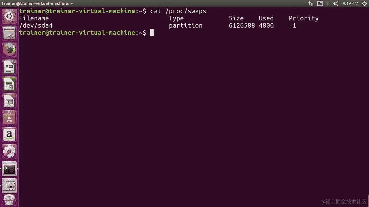 我们还可以从/proc目录中查看交换信息,具体在/proc/swaps中: