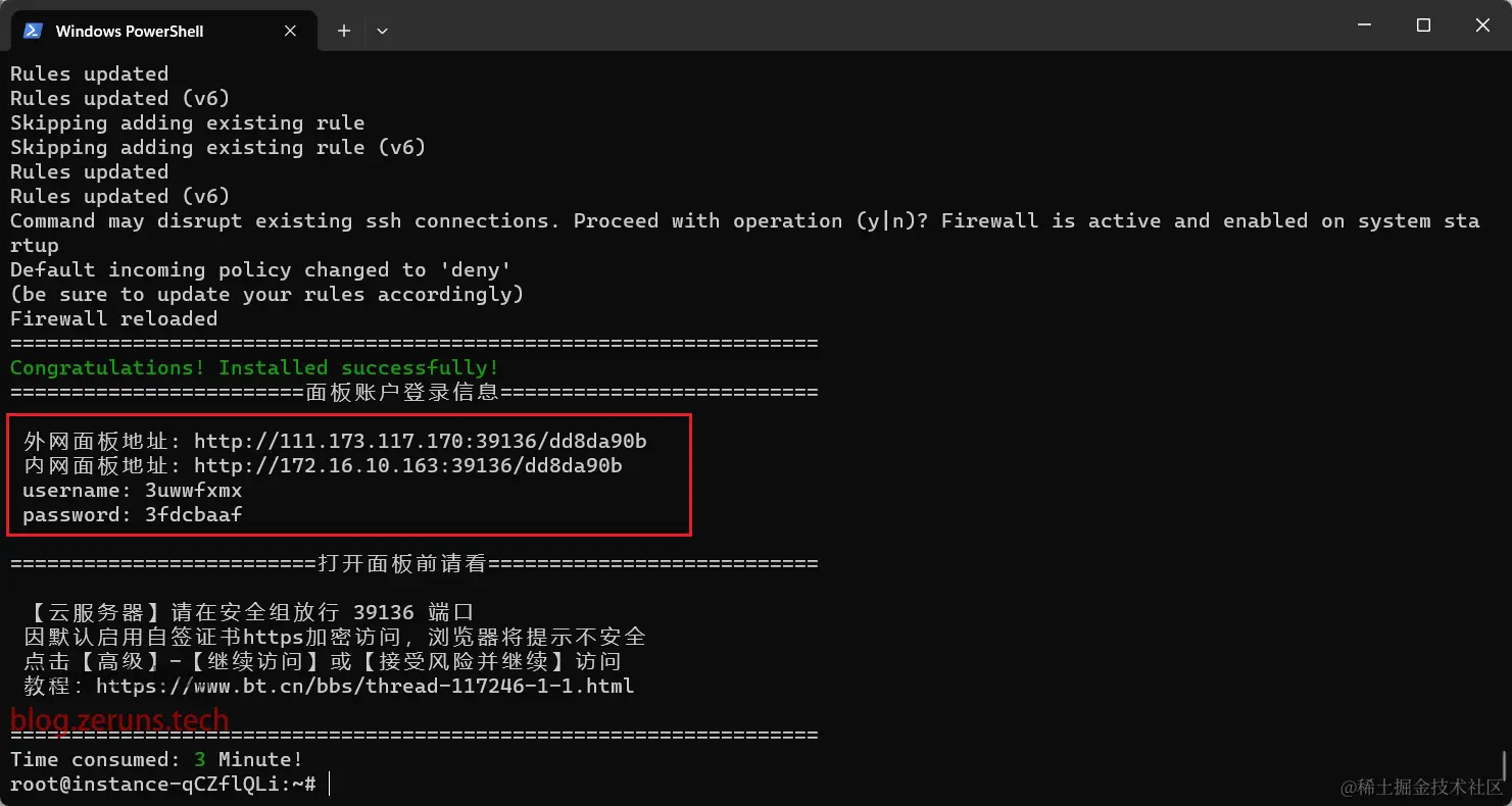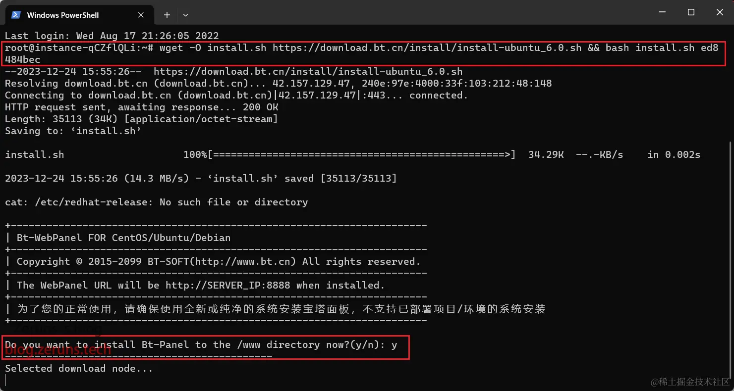如果上面选了预安装APP选了宝塔面板,那么可以跳过下面安装宝塔面板的这一步,直接到登陆面板。