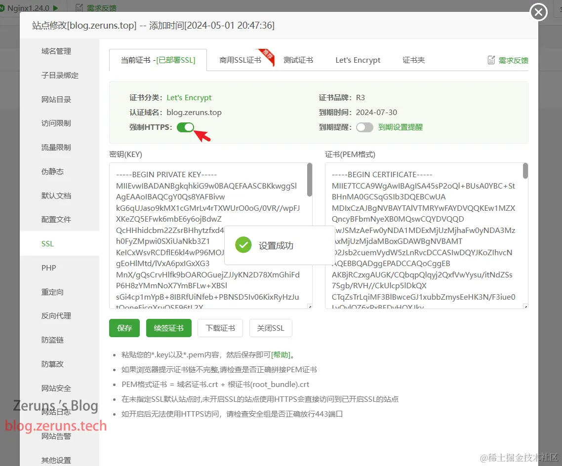 再次访问博客网站,可以看到地址栏上显示了一个小绿锁。