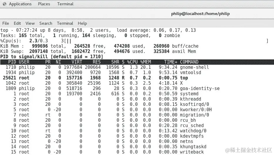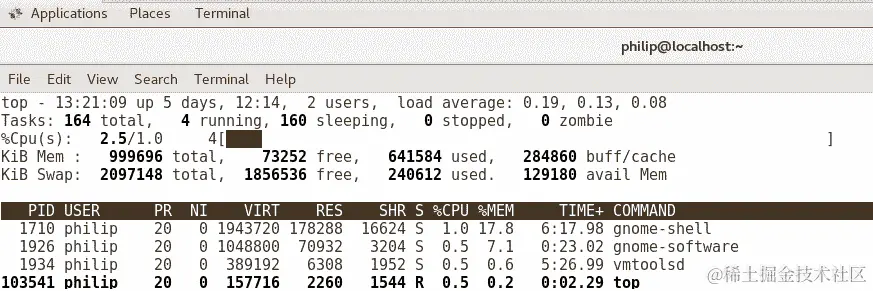 philip 2213 0.0 1.0 720692 10608 ? Sl Aug08 0:05 /usr/libexec/gnome-terminal-server