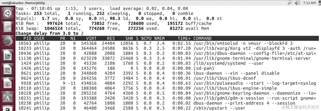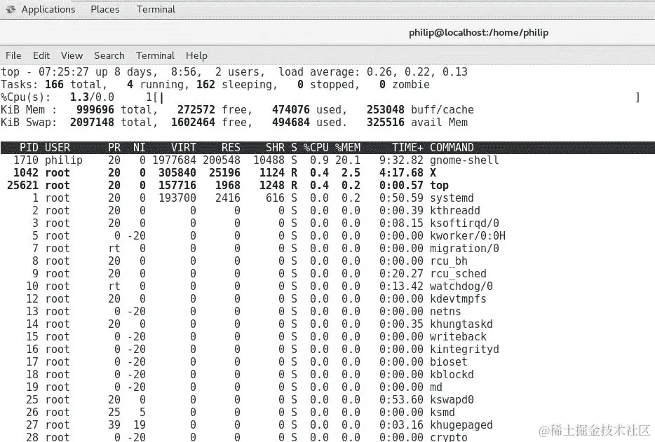 top命令查看和管理进程 -