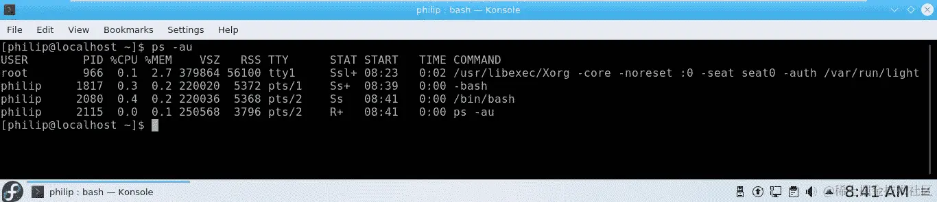 [philip@localhost ~]$ ps -au