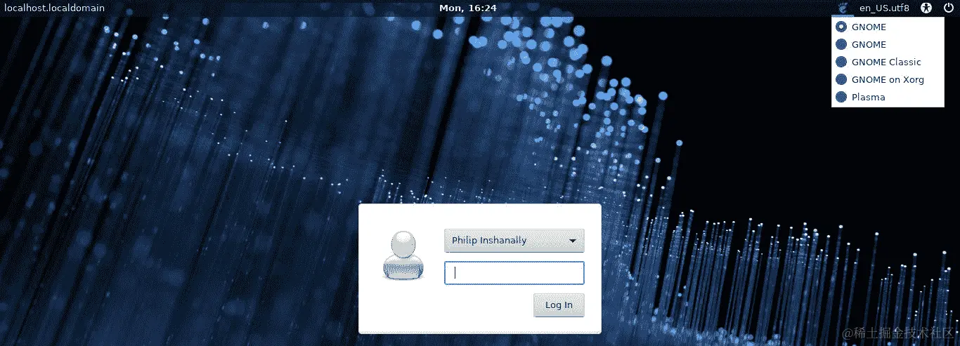 太棒了!根据前面的代码,我们现在在我们的 Fedora 28 系统中运行 Lightdm。此外,我们可以选择在屏幕右上角加载哪个桌面。登录后,我们可以进行验证。我们将使用systemctl命令: