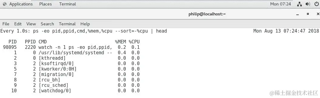 [philip@localhost ~]$ ps -aux