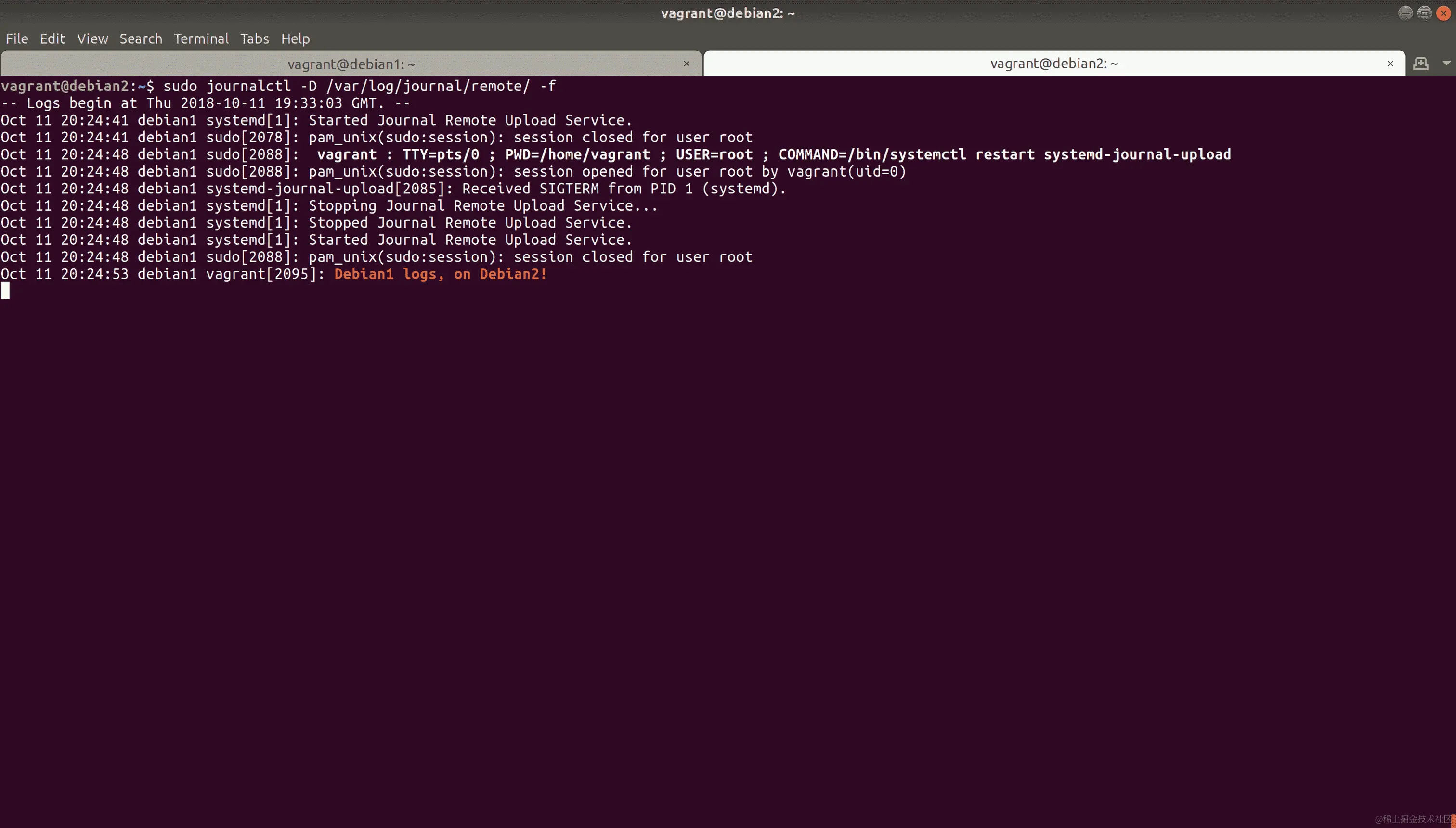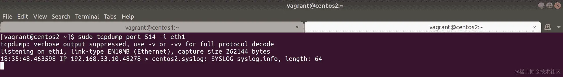 我之前建议重建 VMs,但如果你还没有,如果你遵循了关于远程syslog配置的早期部分,前面的命令可能需要调整。打开文件并确认行看起来是否符合你的期望。