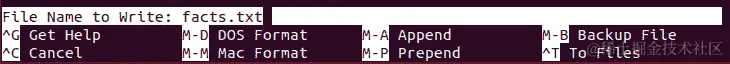 要查看我们创建的facts.txt文件,可以运行cat facts.txt命令: