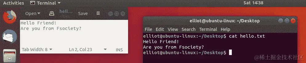 现在让我们通过运行cat file1.txt file2.txt命令来连接file1.txt和file2.txt: