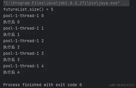 先说结论:Future集合并不是等线程池执行完才开始遍历,而是线程池内的线程执行完一条Future集合就立即遍历一条