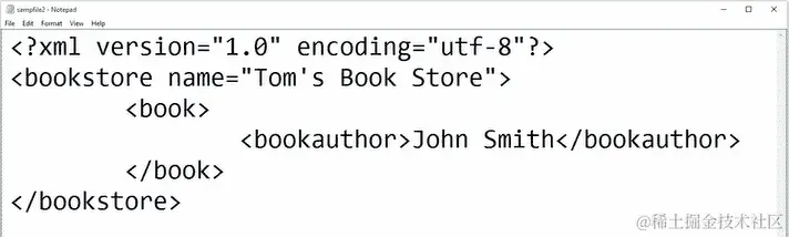 如果你在c:\data>提示符下键入notepad.exe storefile.xml,你将在记事本中看到图 29.3.5中显示的结果: