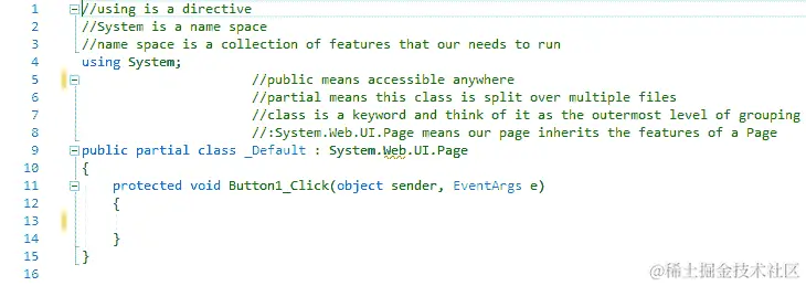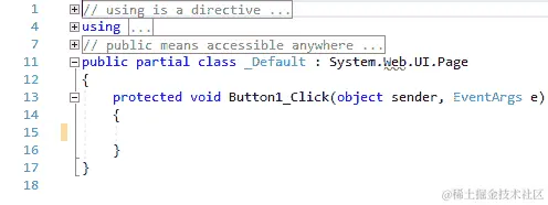 您将在编码中使用此命名空间。(您可以折叠public partial class...上面的所有代码。)