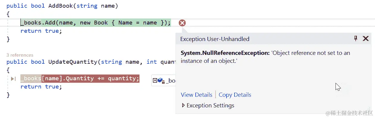 上述代码提供了使用 EF 与数据库交互所需的各种方法。在运行代码时,您可能会遇到以下异常: