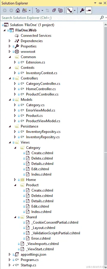 最后,上面的代码表示了我们的CRUD操作中的Delete操作。它还有两个操作方法;一个从存储库中检索数据并将其提供给视图,另一个获取数据请求并根据其 ID 删除特定的Product。