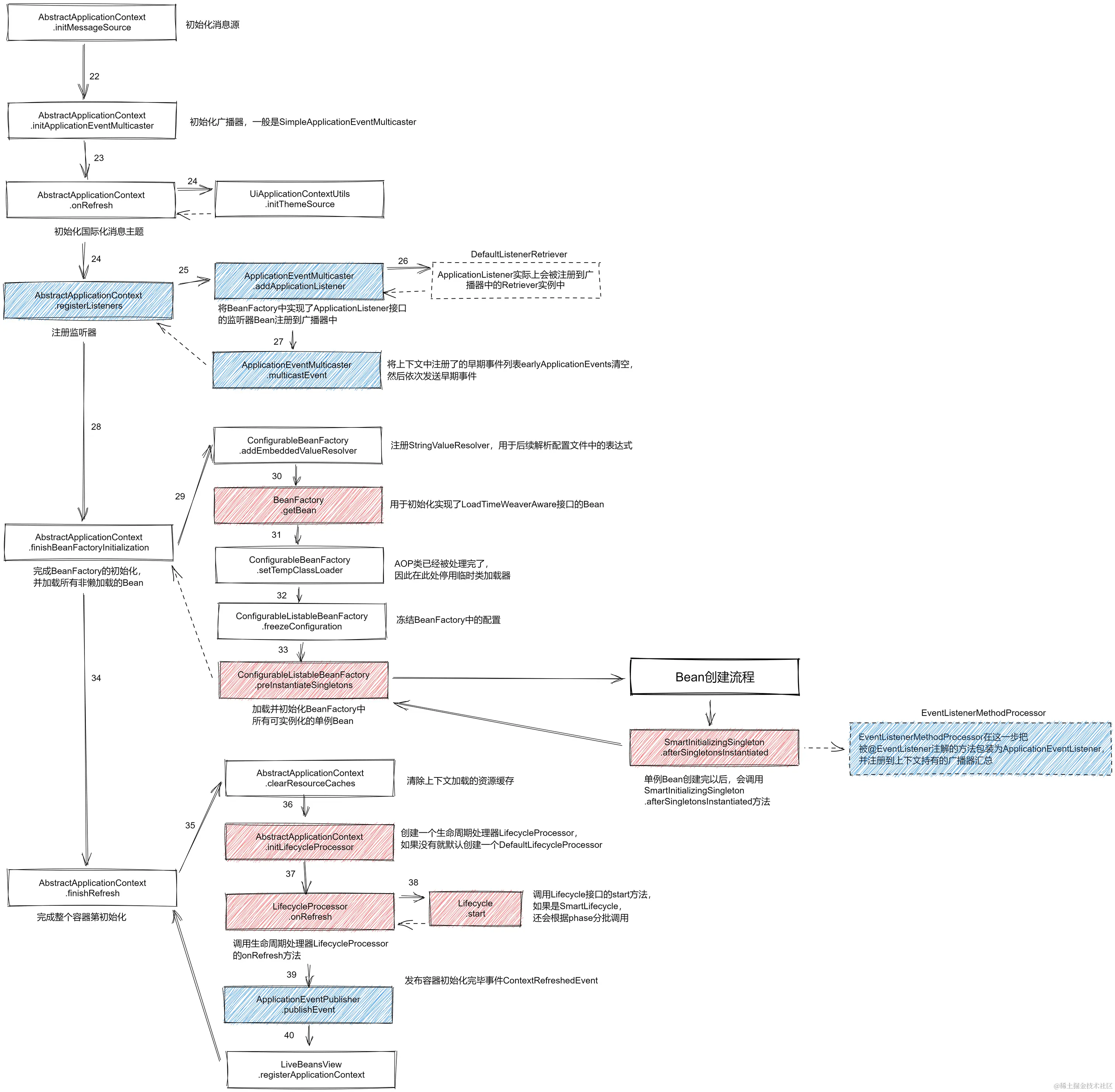BeanFactory初始化;- 事件,Bean及其他配置的初始化;