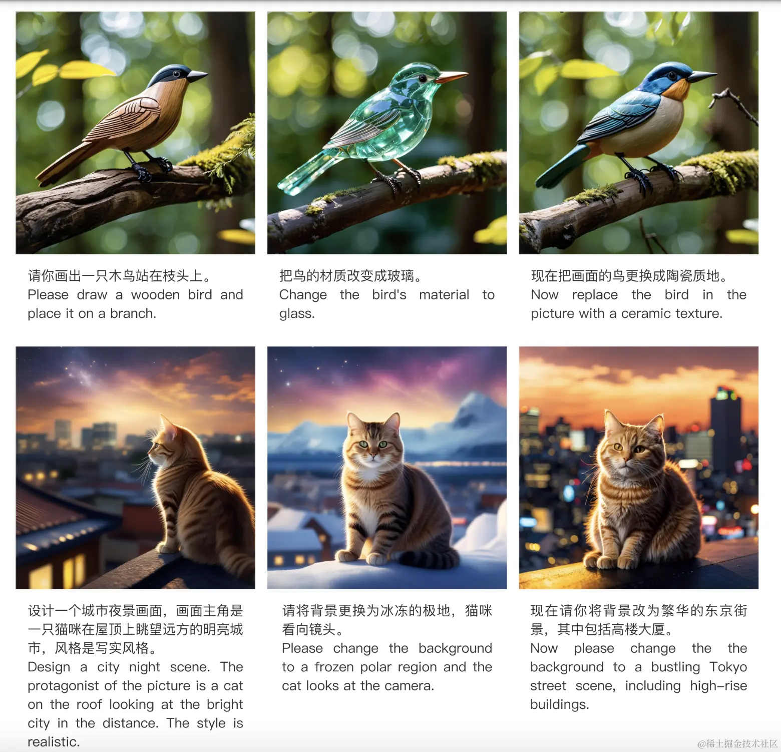Hunyuan-DiT 支持多轮对话式图像创作,用户可以与模型进行交互,逐步完善图像生成,实现更具创意的创作体验。例如,用户可以先输入 “一只可爱的小猫”,模型生成一张小猫的图像,然后用户可以继续输入 “给小猫戴上一个红色的蝴蝶结”,模型会根据用户的新指令,在原有的图像基础上进行修改,最终生成用户满意的图像。