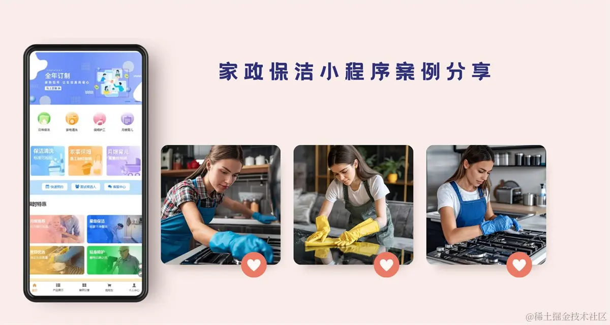 丰富的功能和良好的用户体验,能够满足大多数用户的需求,提升用户满意度。最后,使用模板还能够让您更专注于核心业务逻辑的开发和优化,提升小程序的专业性和竞争力。综上所述,使用模板制作家政保洁小程序是一种高效、经济、可靠的选择,能够帮助您快速推出优秀的产品并赢得市场的认可。