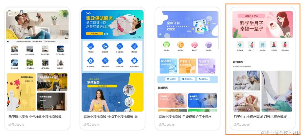 step1, 在「易极赞」的小程序模板中,选中月子中心小程序模板,一键即可生成发布自己的品牌设计小程序