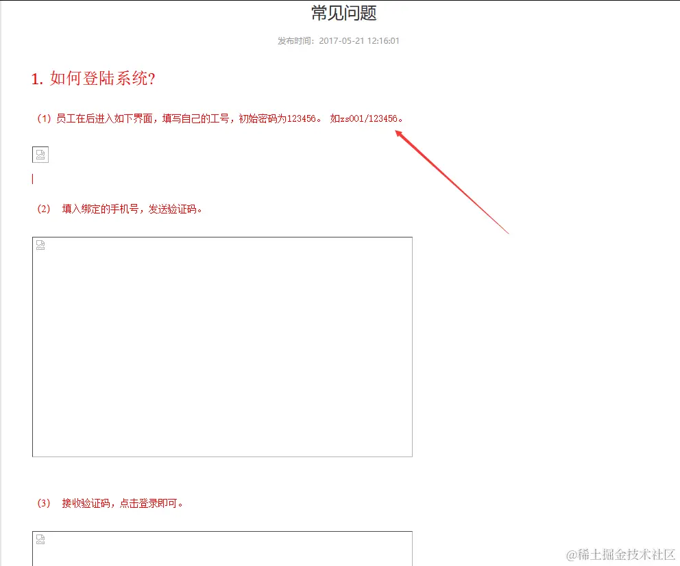 看得出来也是一个年久失修的系统了,图片的链接都已经404了。但是这里得到了一个示例账号zs001,也知道了初始密码是123456(吐槽:果然年久失修了,这个系统就没有输入密码的input,只有一个手机号验证码)。