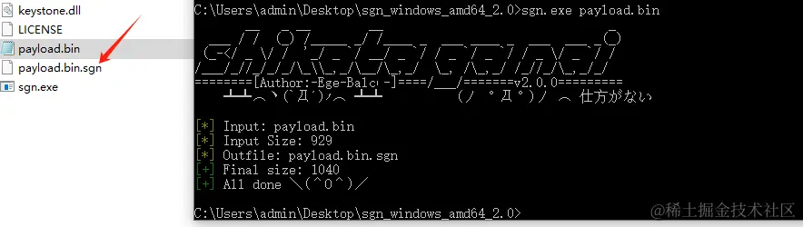 使用方法也很简单,把cs生成的shellcode放在sgn文件夹中执行 ,***.sgn就是免杀之后的shellcode了。