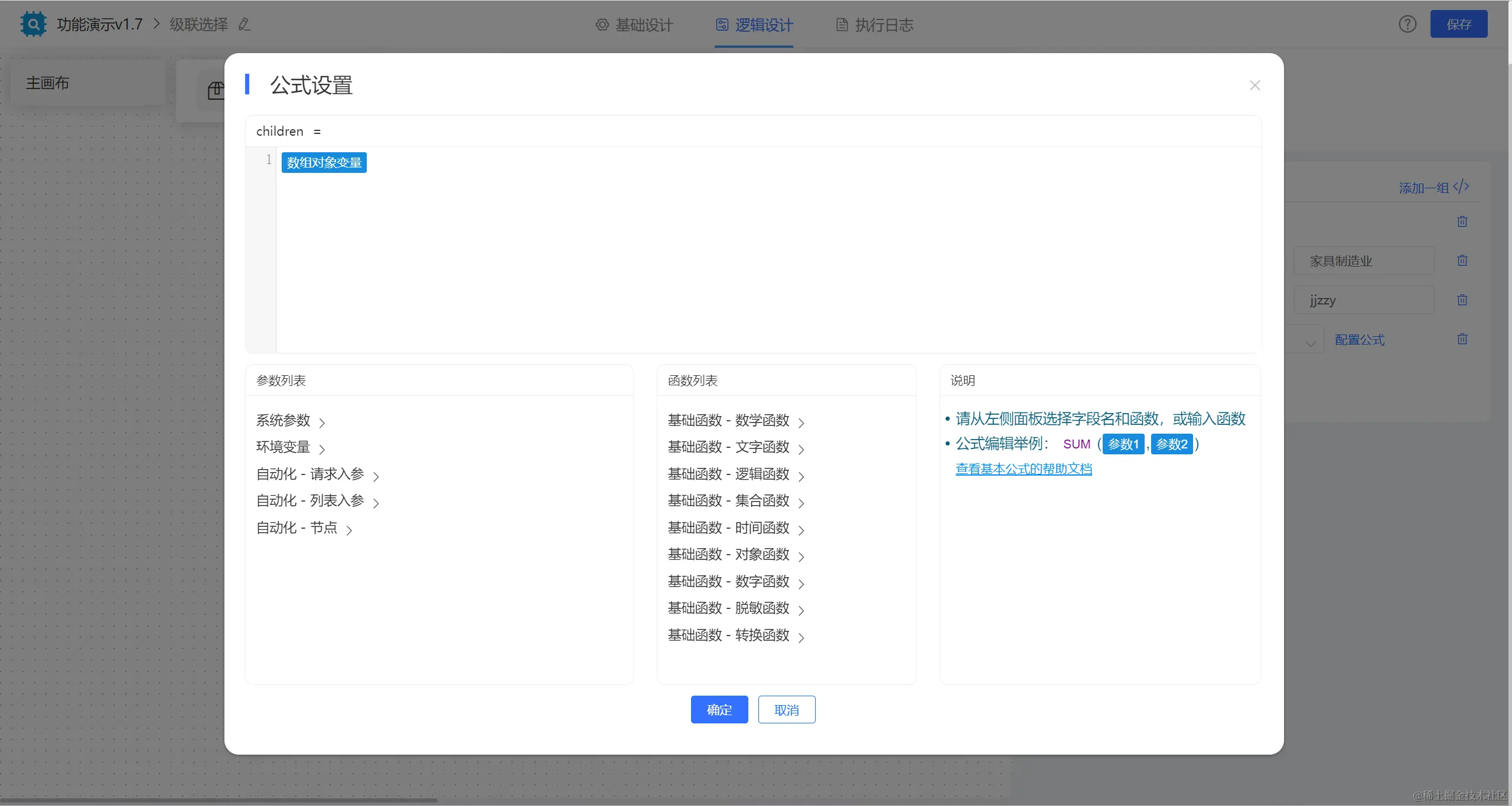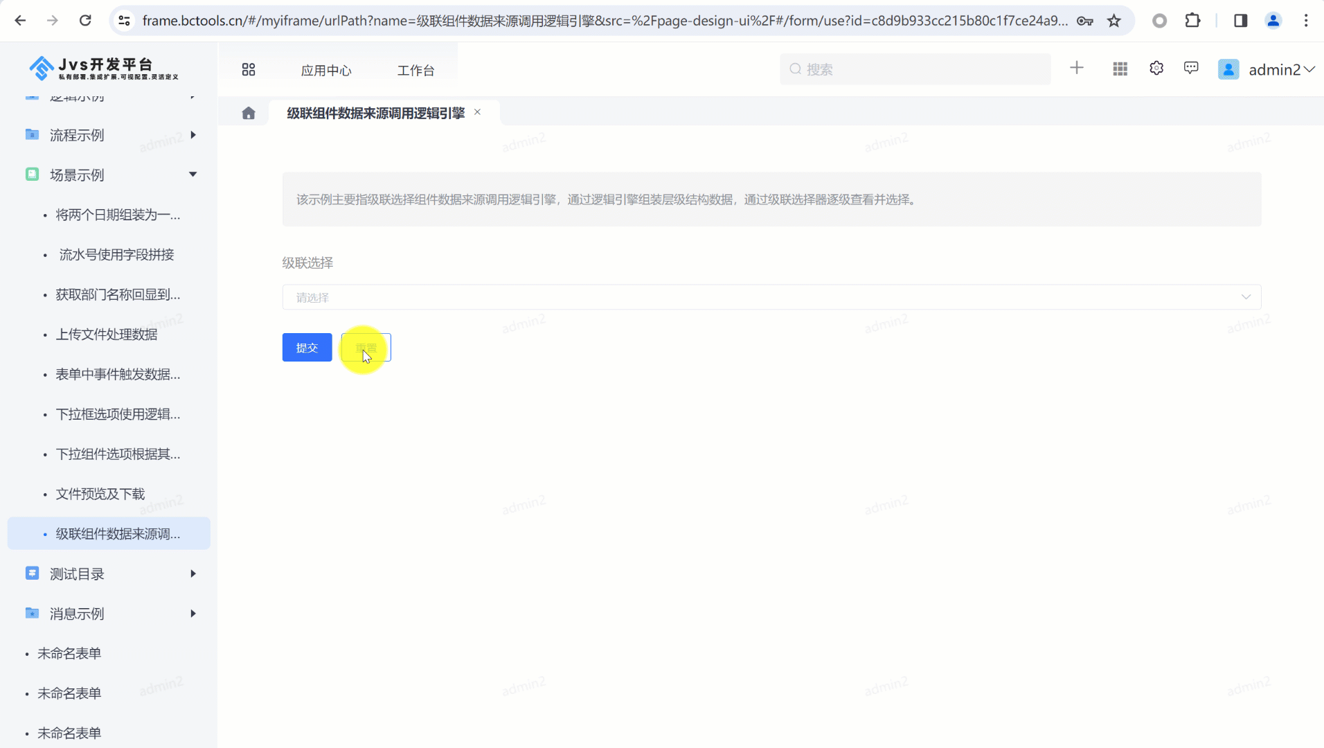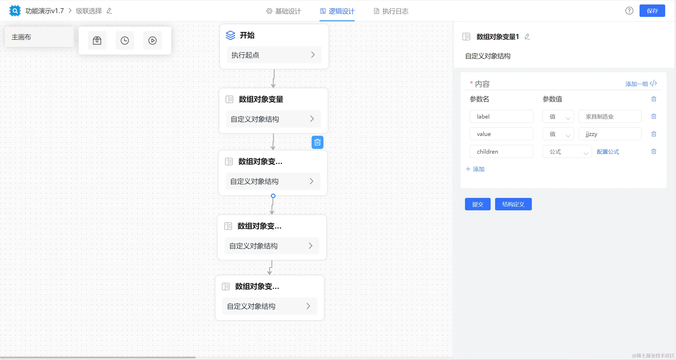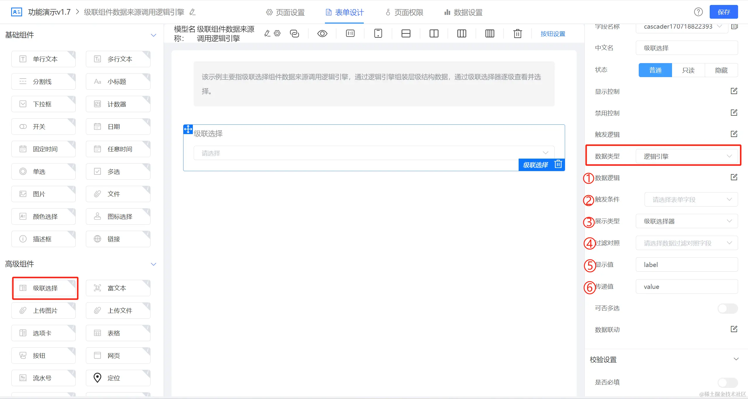 在现代的软件应用中,级联选择组件是一种常见且用户友好的交互方式,特别是在处理具有层级关系或分类关系的数据时。JVS低代码表单提供级联选择组件,它能满足复杂的业务场景,级联选择组件的数据来源已不再局限于静态数据,可以通过调用逻辑引擎获取,直接在业务逻辑中组装层级结构数据,通过级联选择器逐级查看并选择。那么接下来我们看下如何配置。