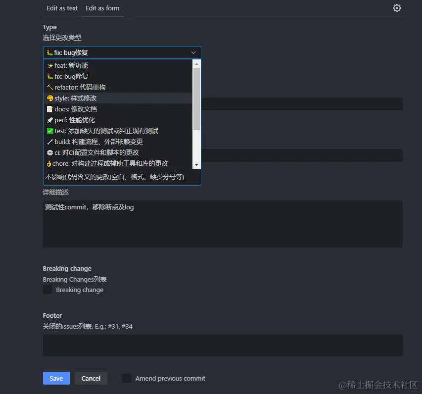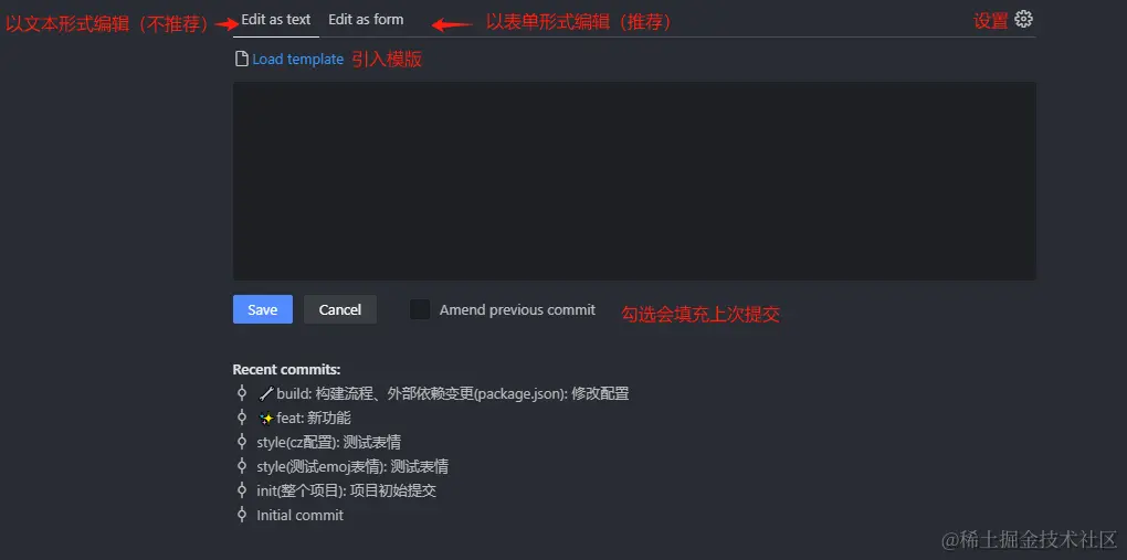 Edit as Text和Edit as form的区别就是是否在一行显示,用form编辑的正文只能点击查看,text适合简短或者不想写太多commit使用,大家可以根据自己的需要进行选择。