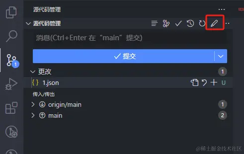安装完后重启编辑器,在修改完文件后,会发现侧边栏出现一个铅笔图标