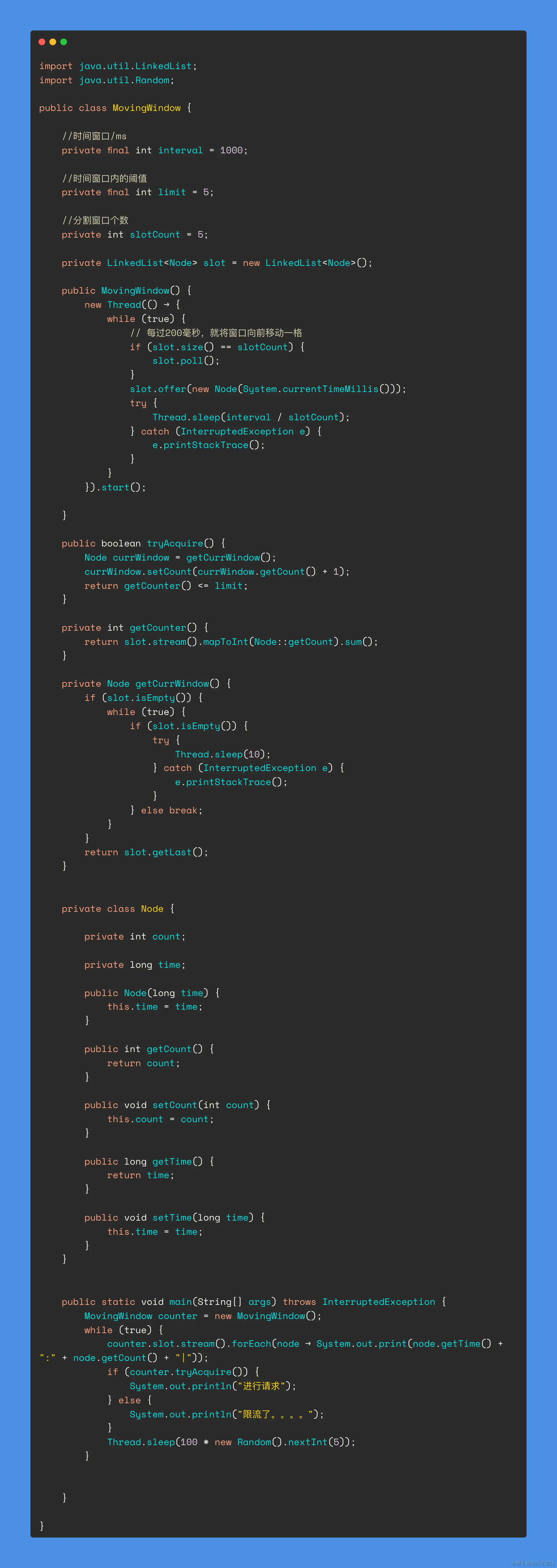 - 滑动时间窗口算法。