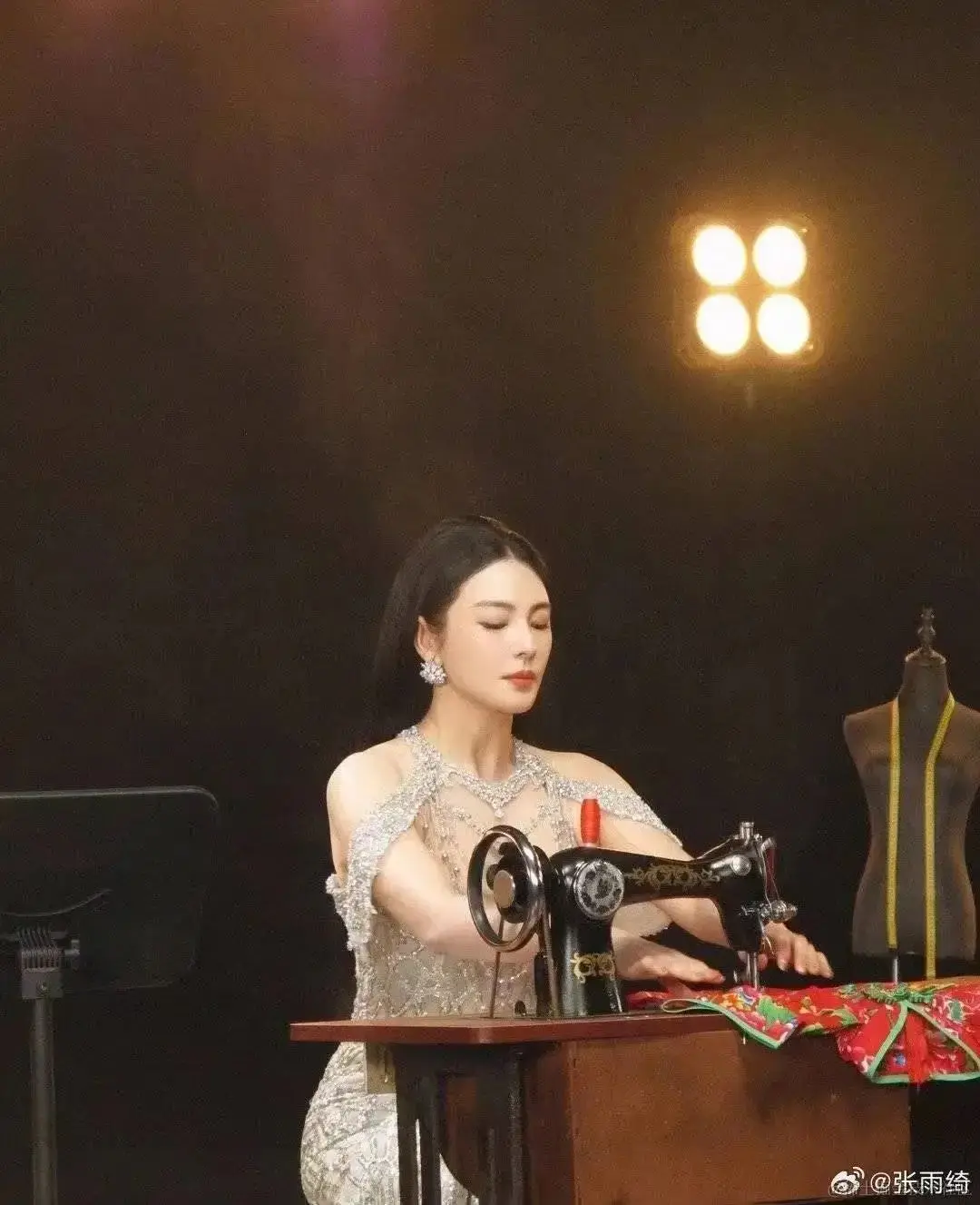 在这系列视频里,张雨绮身着熠熠生辉的水钻晚礼裙,脚踏璀璨十厘米高跟鞋,妆容无懈可击,却手捧平易近人的辣条与皮蛋,脚踏岁月痕迹明显的旧式缝纫机,甚至诙谐演绎起驾照考试的科目三,展现出一种前所未有的奢华与乡土并蓄之美。