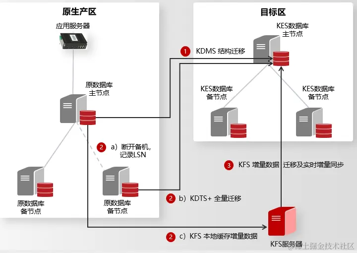 不停机迁移解决方案中,通过使用金仓自研的KDMS、KDTS和KFS软件工具,实现在原有数据库系统不停机的情况下,完成数据的平滑迁移。