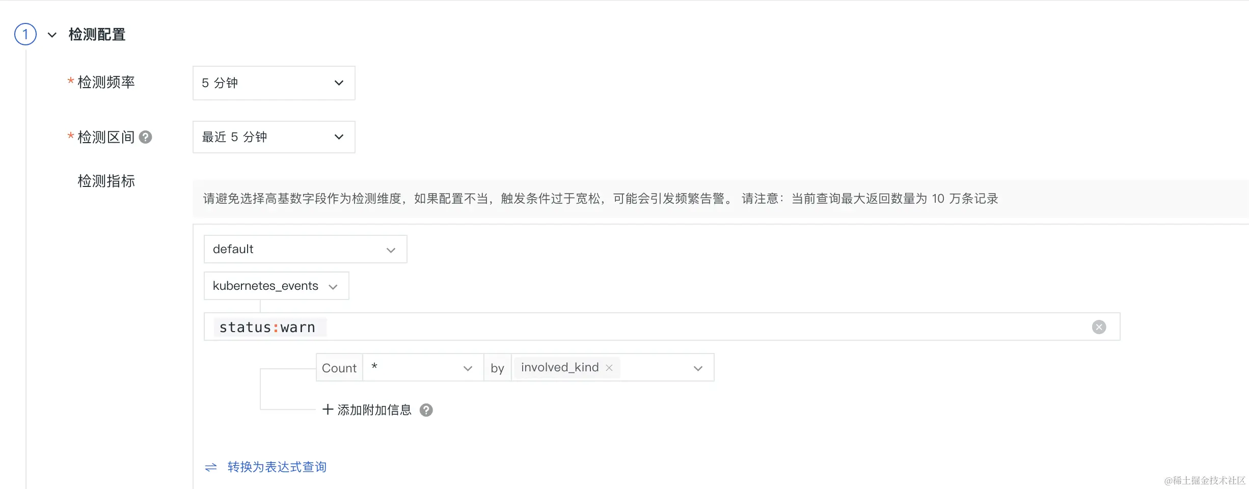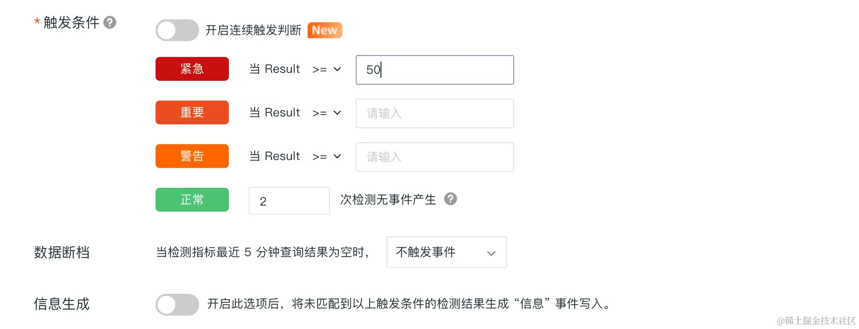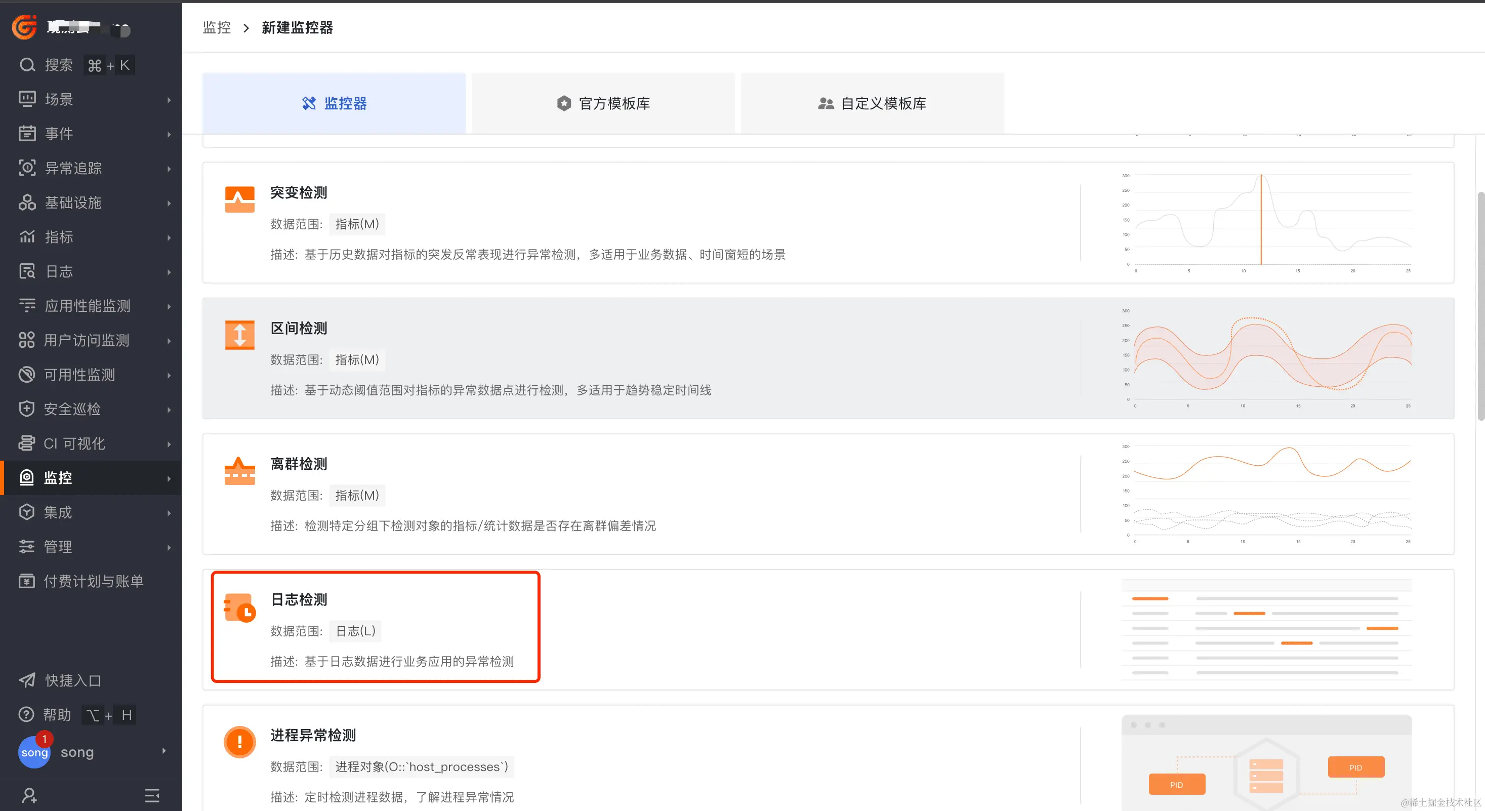 其中,日志检测用于监控工作空间内基于日志采集器产生的的全部日志数据。支持基于日志的关键字设置告警,及时发现不符合预估行为的异常模式(如:日志文本数据中存在异常的标签),多适用于 IT 监控场景下的代码异常或任务调度检测等。