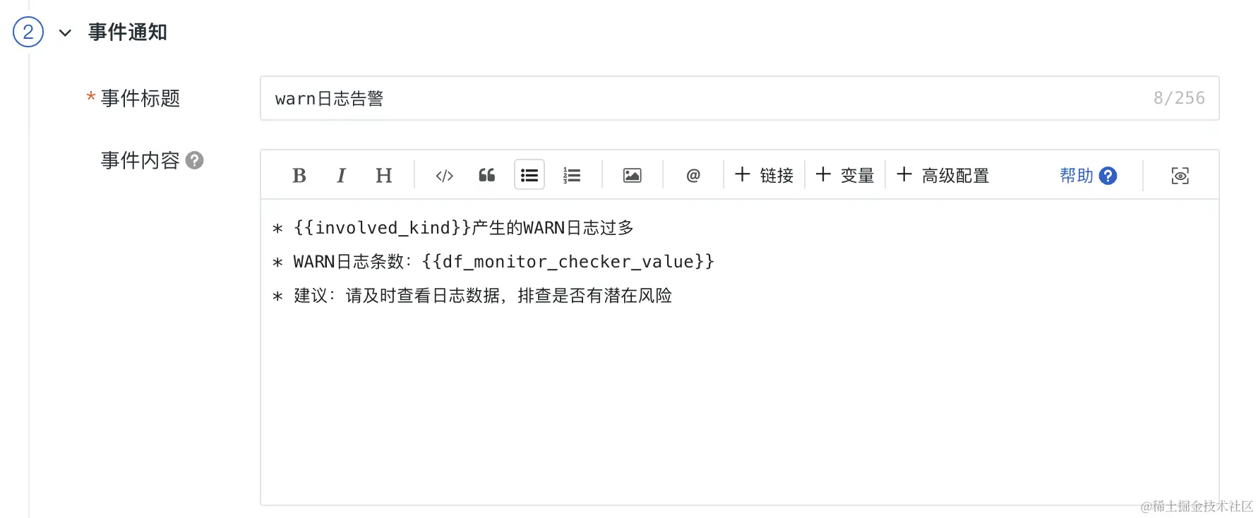 第三步:编辑事件通知内容和告警策略,点击创建即可。