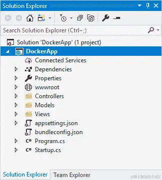 创建完 ASP.NET Core 应用程序后,您将在解决方案资源管理器中看到以下项目设置: