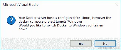 但是,如果您没有单击此选项,当选择操作系统平台为 Windows 时,Visual Studio 将要求您切换到 Windows 容器。