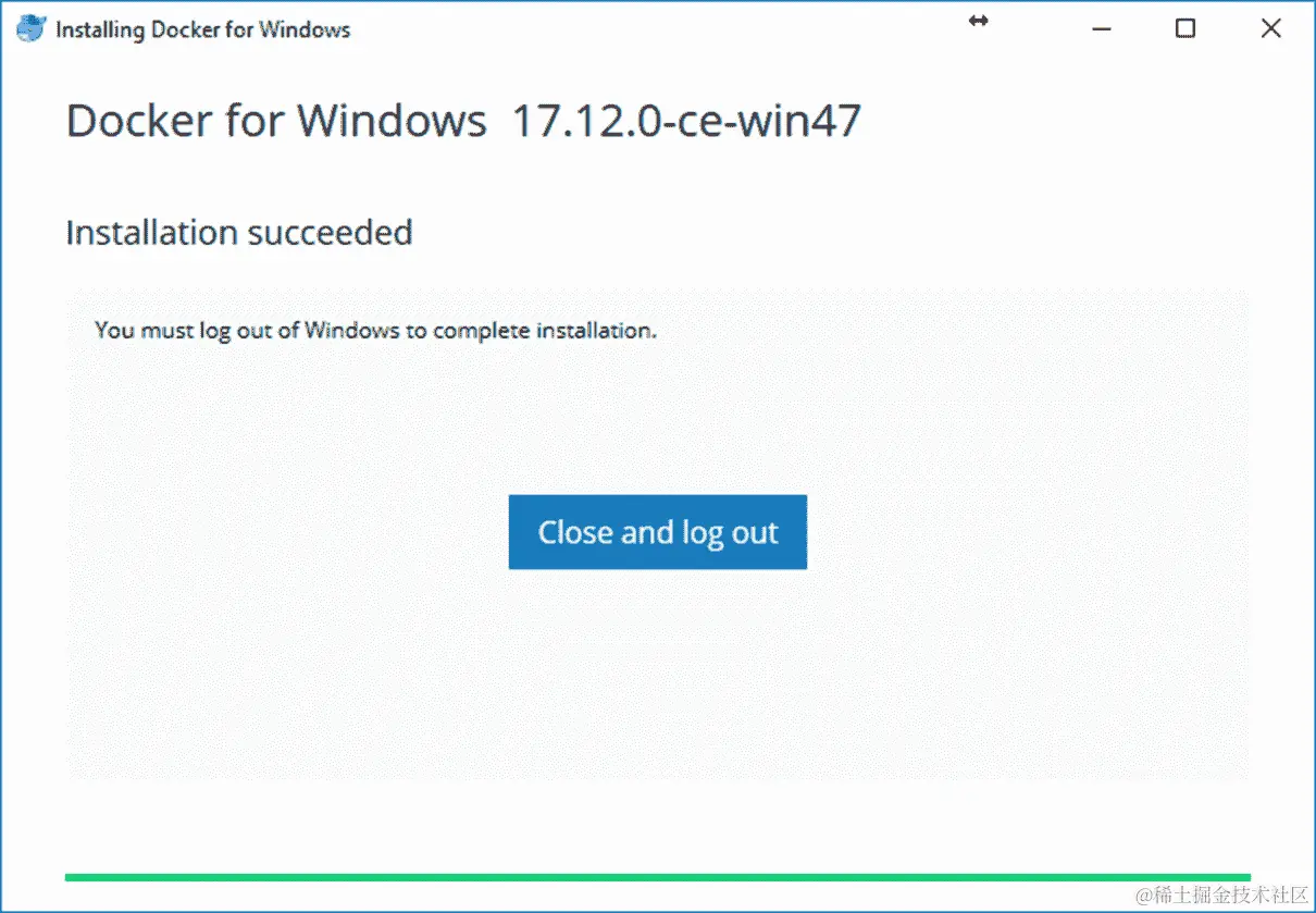 通常情况下,我总是以管理员身份运行安装程序。Docker 的安装过程非常简单。安装完成后,它会提示您注销 Windows: