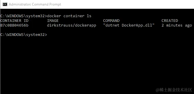 现在您可以看到容器 ID,以及有关正在运行的容器的其他信息: