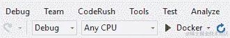 当您查看 Visual Studio 2017 中的菜单时,您会注意到“运行”按钮已更改为“Docker”: