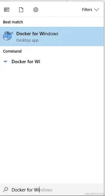 要开始使用 Docker,请查找 Docker for Windows 桌面应用程序: