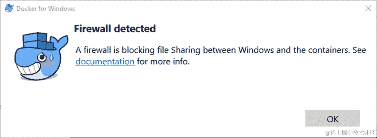 此时,您应该能够从设置屏幕中选择要与 Docker 一起使用的共享驱动器。如果仍然看到防火墙检测到的消息,则很可能是您的防病毒软件正在阻止它。