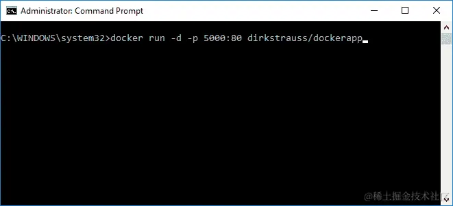docker run -d -p 5000:80[image-repository]来运行容器,这将将容器绑定到端口5000: