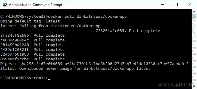 - 以管理员身份运行 Windows 命令提示符,输入 Docker pull 命令,然后按Enter键: