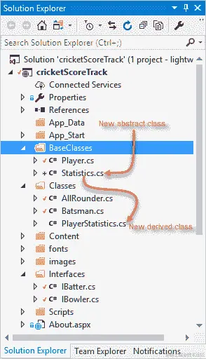 在Classes文件夹中,创建一个名为PlayerStatistics的新派生类(也就是它继承自Statistics抽象类)。代码应该如下所示: