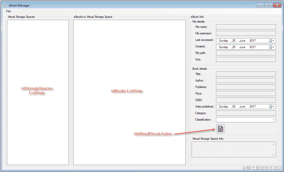 使用 Visual Studio 2017,我们将创建一个简单的 Windows 窗体应用程序模板项目。您可以随意命名应用程序,但我将其命名为eBookManager:
