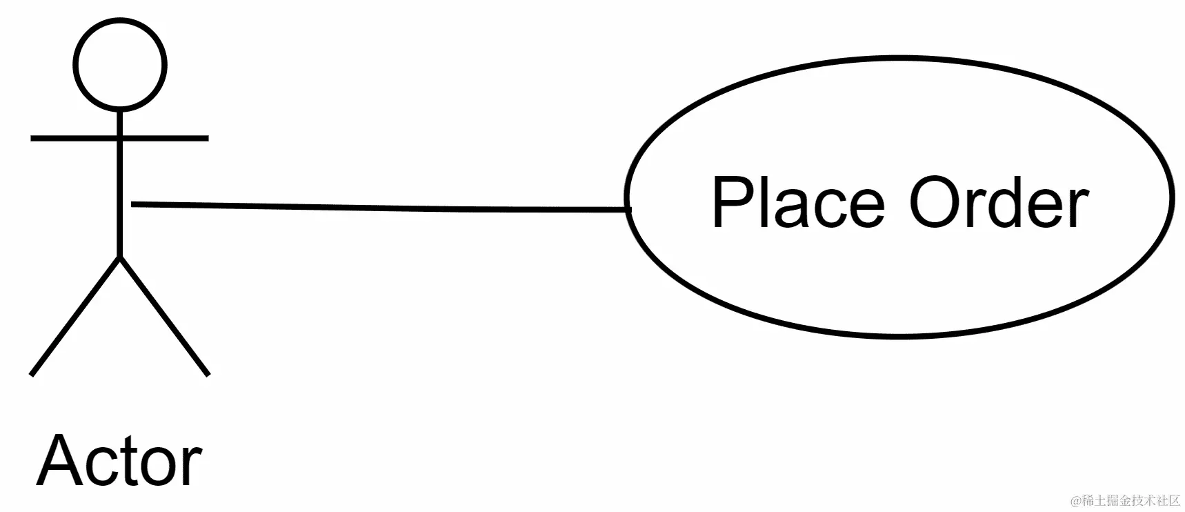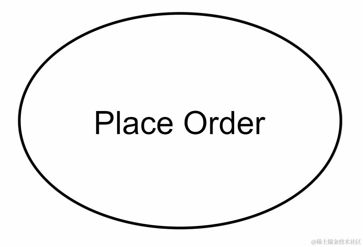 用例图的视觉部分或表示被称为用例。这代表了系统的功能。角色将执行一个用例来实现一个目标。用例由一个带有功能名称的椭圆表示。例如,在餐厅应用程序中,下订单可能是一个用例。我们可以表示如下: