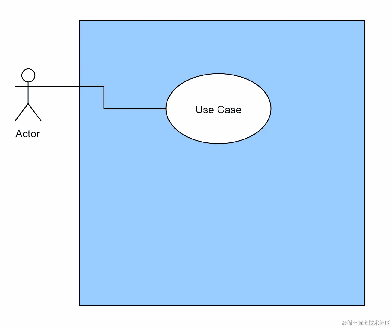 用例图中的角色不一定是一个人,而是系统的用户。它可以是一个人,另一个系统,甚至是系统的另一个模块。角色的可视表示如下图所示:
