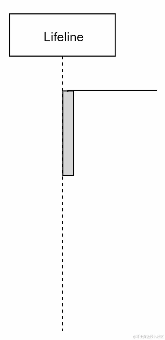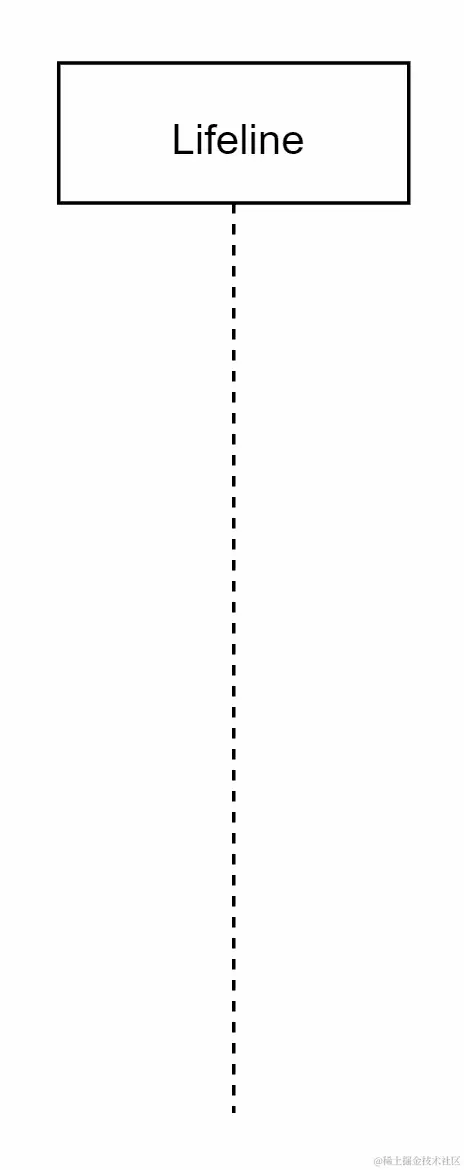 一个生命线由一个从底部发出的带有垂直线的框表示,如下图所示:
