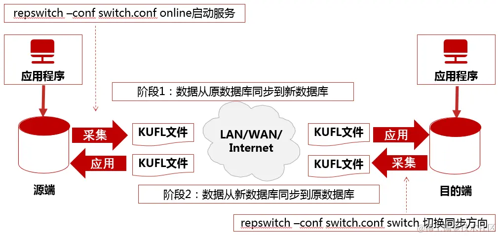 KFS的双轨并行技术是在单向增量数据同步的基础上进行扩展增加的。核心原理是在同步服务运行过程中,可对服务的角色进行动态的修改,从而达到数据同步方向的切换,实现数据的反向同步。