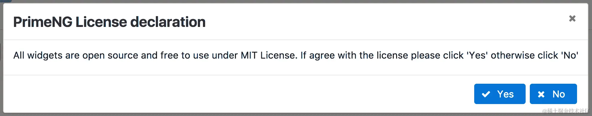 PrimeNG License declaration