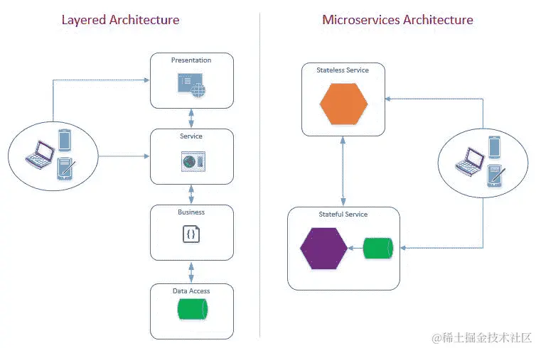 在微服务架构中,应用程序被划分为松散耦合的服务,每个服务都公开一个端点,并部署在单独的服务器上,或者更可能是容器上。每个服务通过某些端点与其他服务通信。