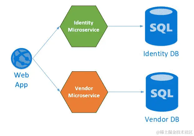 采用这种设计,每个服务都有自己的数据库,应用程序松散耦合。对数据库的修改不会损害或破坏任何其他服务,并提供完全隔离。这种设计对部署场景很有好处,因为每个服务都包含自己的数据库,部署在自己的容器中: