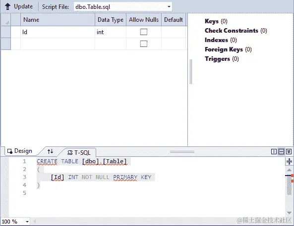 现在,让我们再添加一个字段。右键单击 dbo.People 表图标,然后选择“查看代码”。要添加一个额外的字段,在DATEADDED之后输入以下内容: