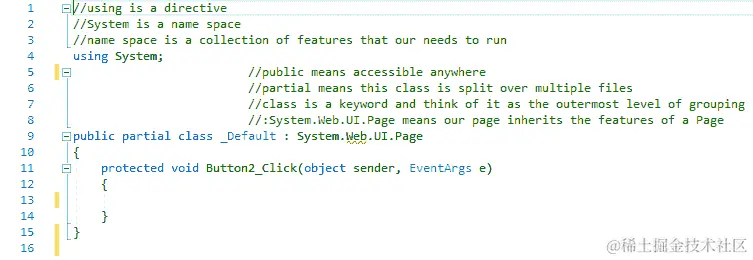 同样,这一行是为了能够读取硬盘。这是两个新的命名空间。您现在可以折叠掉以public partial class...开头的所有内容。